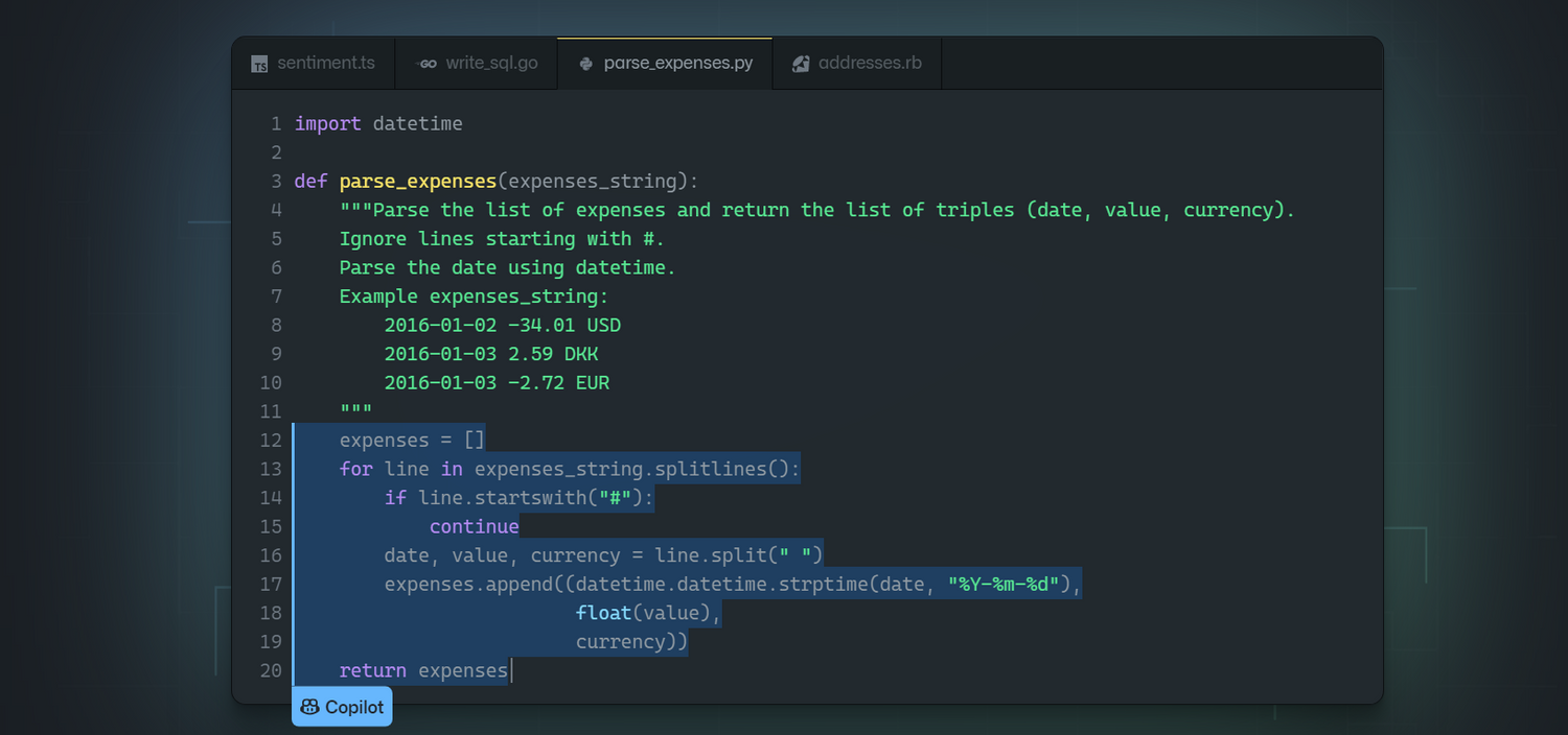 GitHub Copilot is supported by the Codex API, OpenAI's latest AI technology. GitHub Copilot comprehends much more context than typical coding helpers. Copilot also utilizes the context you've given and creates code to match, regardless of whether it's in a docstring, remark, function names, or just the code itself. They are working closely with OpenAI to make GitHub Copilot better at generating safe and reliable code as developers utilize it.