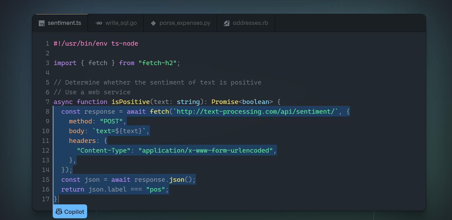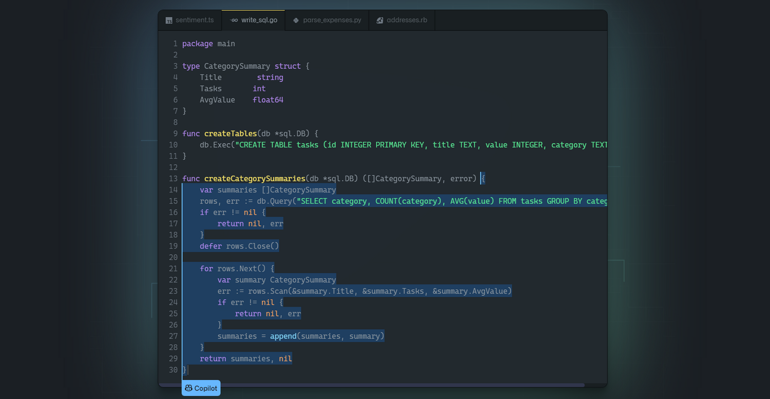 Below are some screenshots of what it can do in relation to sentiment, parsing expenses, and SQL.